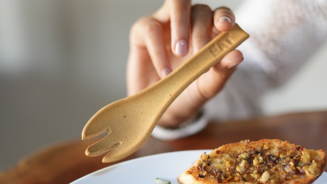 Răspunsul FRENVI: tacâmuri care pot fi consumate sau compostate. Tehnologia brevetată CTC3DF – formare 3D prin termo-compresie continuă permite fabricarea tacâmurilor din cereale (mei, orez, grâu) într-un mod eficient și sustenabil. Tacâmurile sunt rezistente la alimente și băuturi calde sau reci, pot fi consumate după utilizare sau compostate, fără impact negativ asupra mediului.